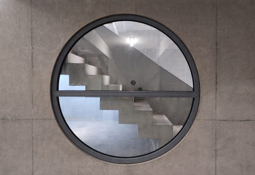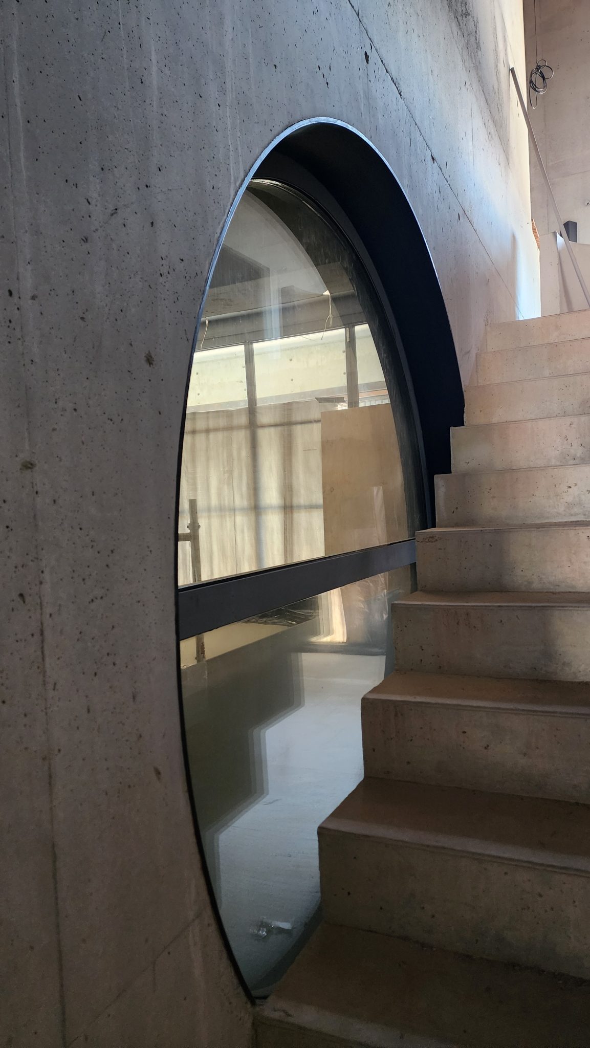 Installed to separate the restaurant and fire escape areas, this HUGE circular fire rated window incorporates 52mm Pilkington Pyrostop with Forster Fuego Light fire rated steel framing system.